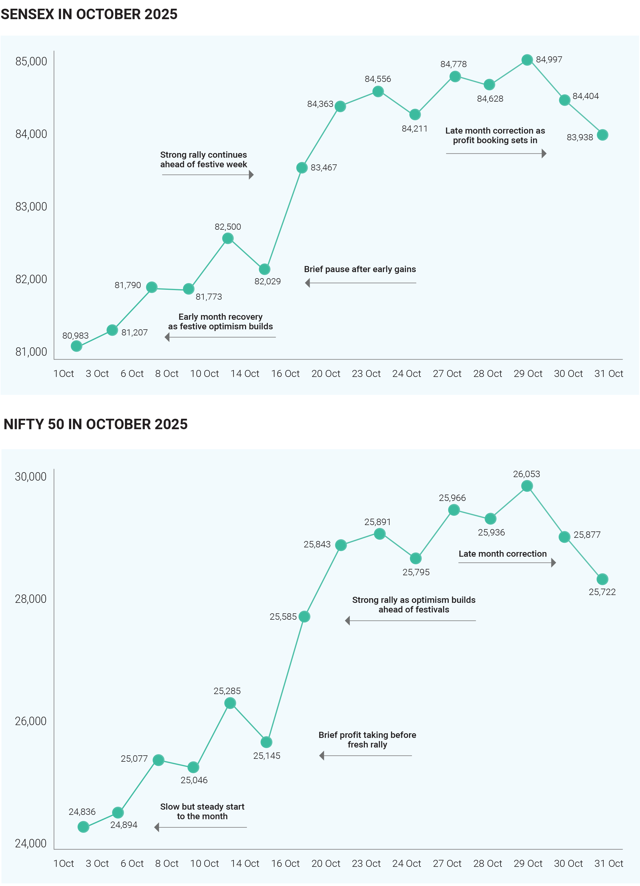 By October 31, 2025, the Sensex settled at 83,938.71,